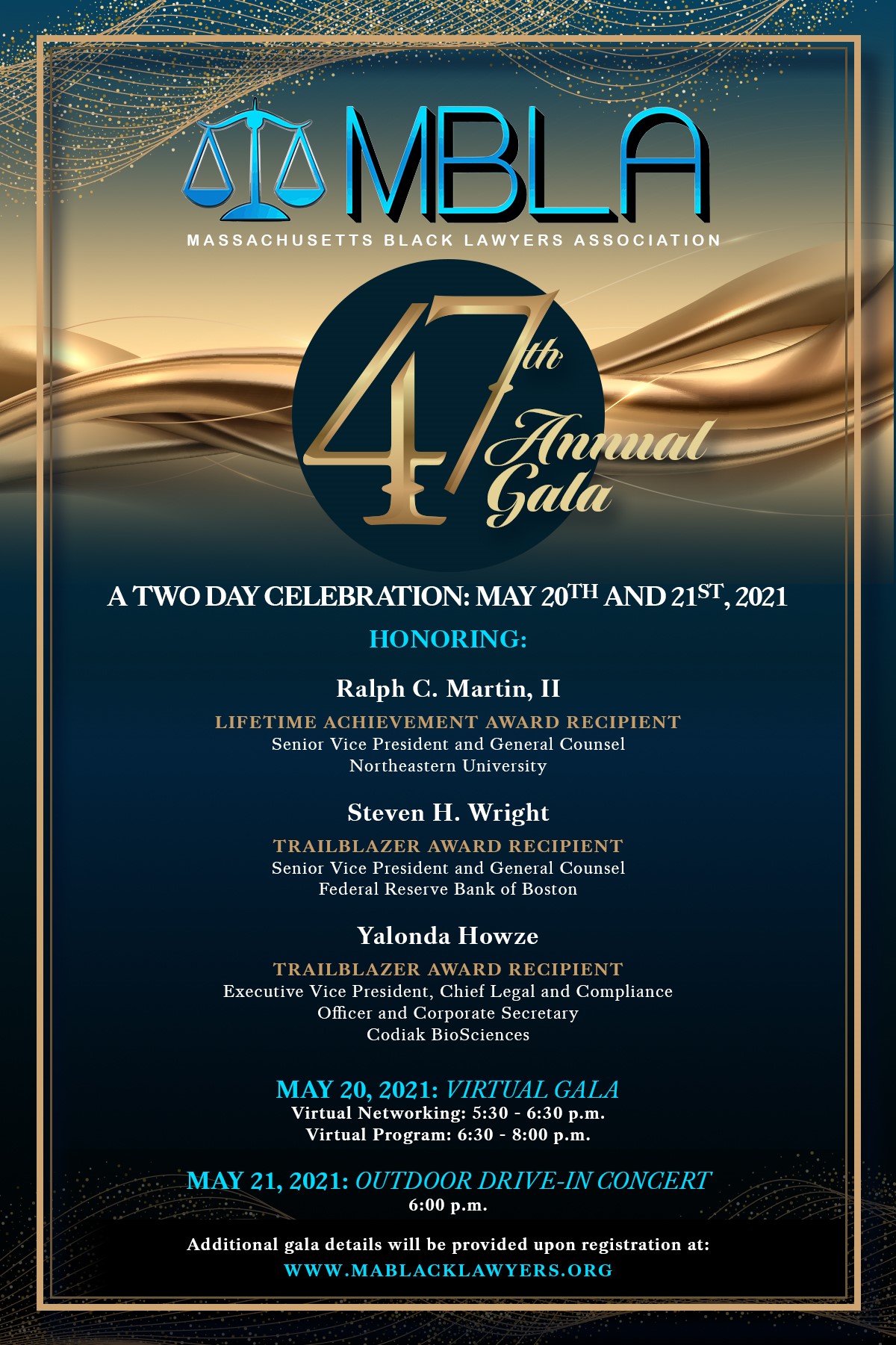 A 2-Day Celebration: May 20th & 21st, hosted by the Massachusetts Black Lawyers Association